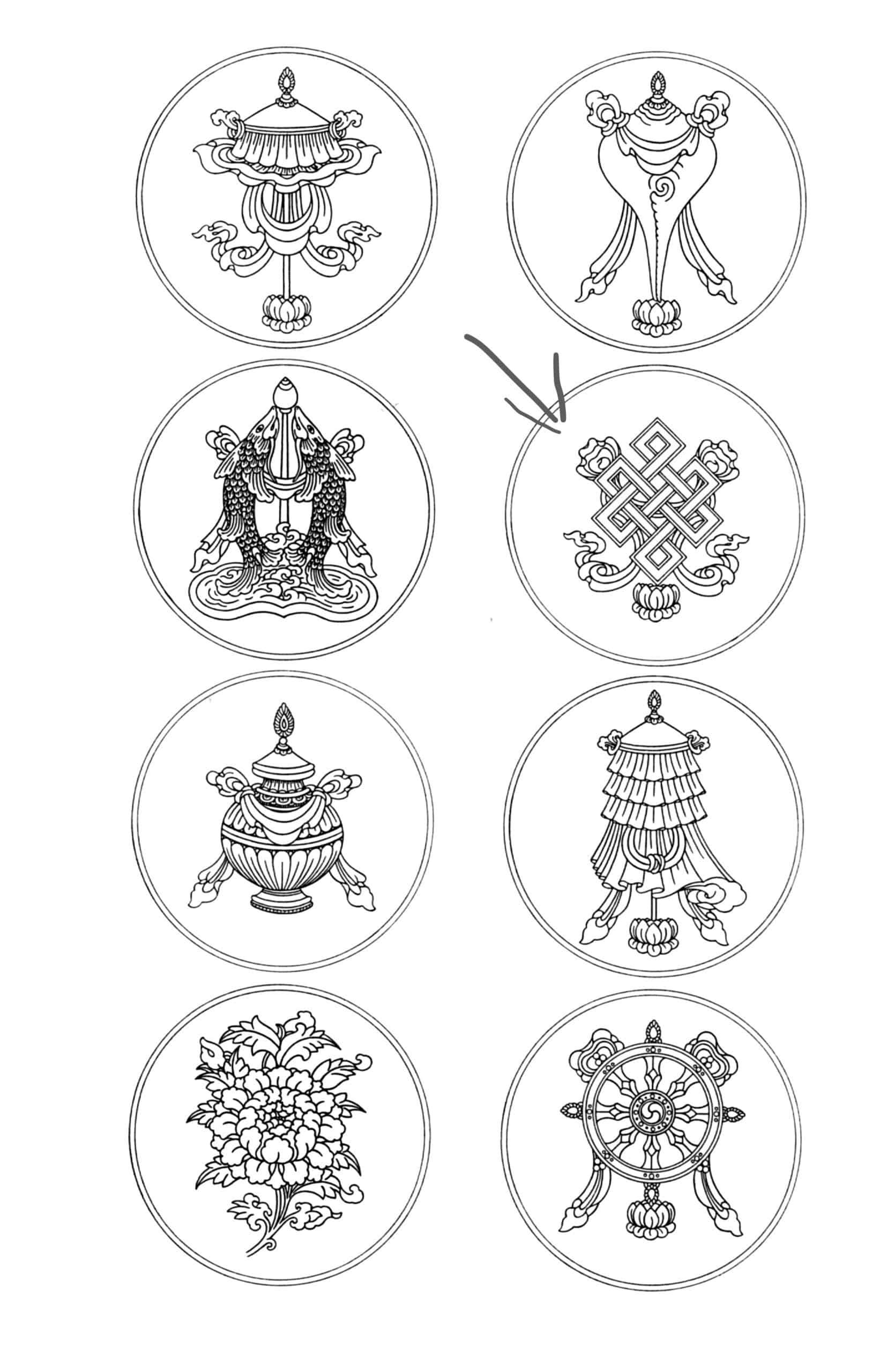 Here is a quick outline of the Eight Auspicious Symbols.